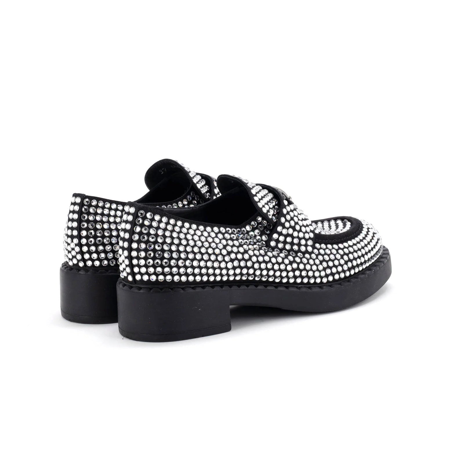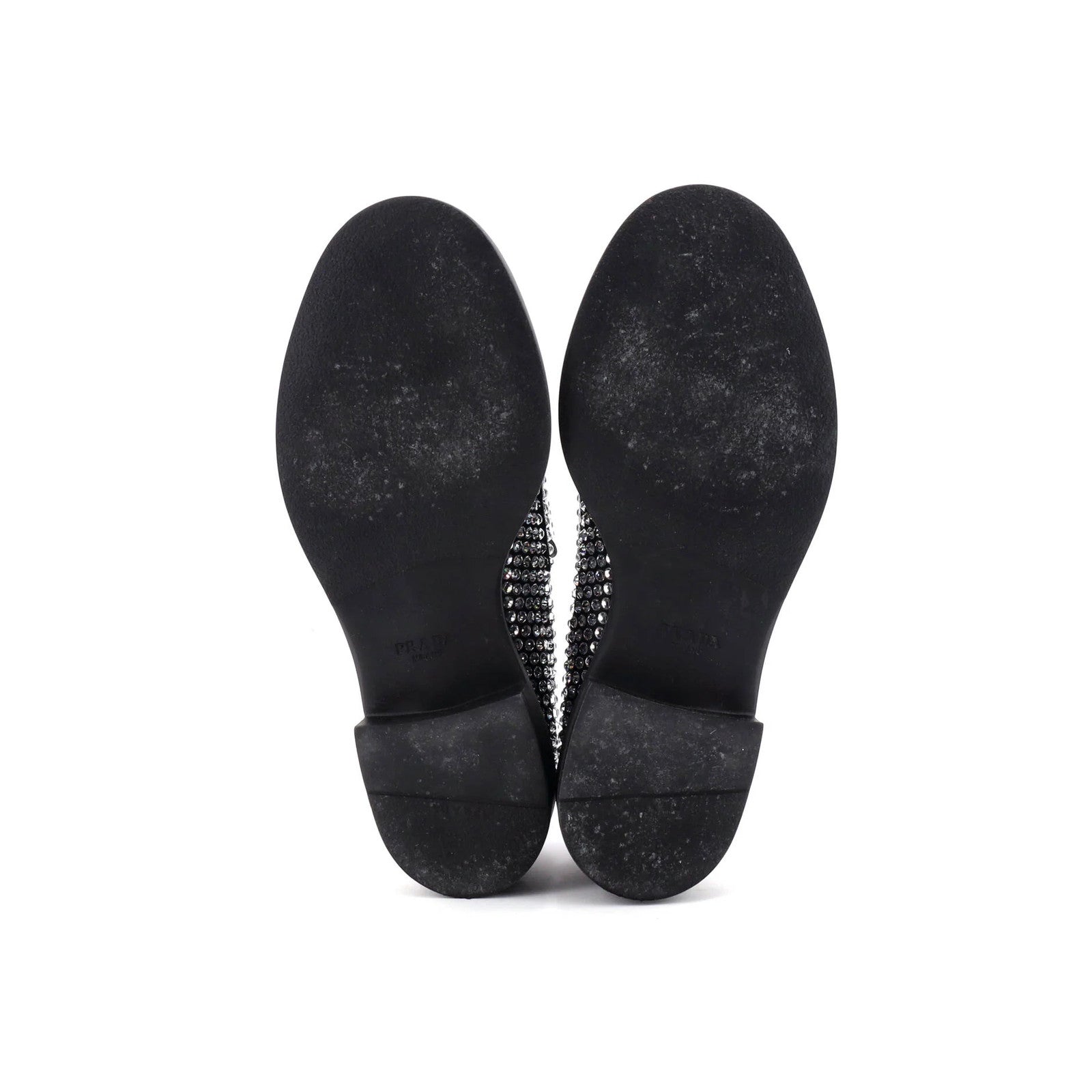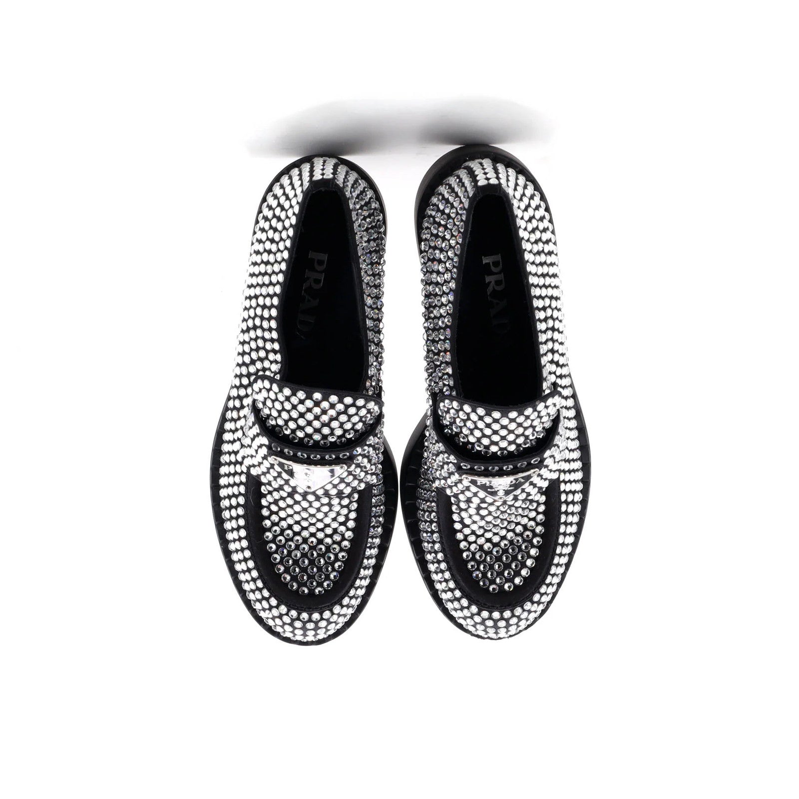Prada Women'S Triangle Logo Loafers Crystal Embellished Satin