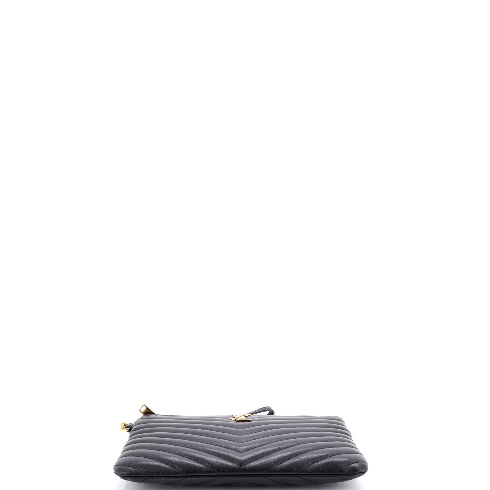 Saint Laurent Classic Monogram Wristlet Pouch Matelasse Chevron Leather Small