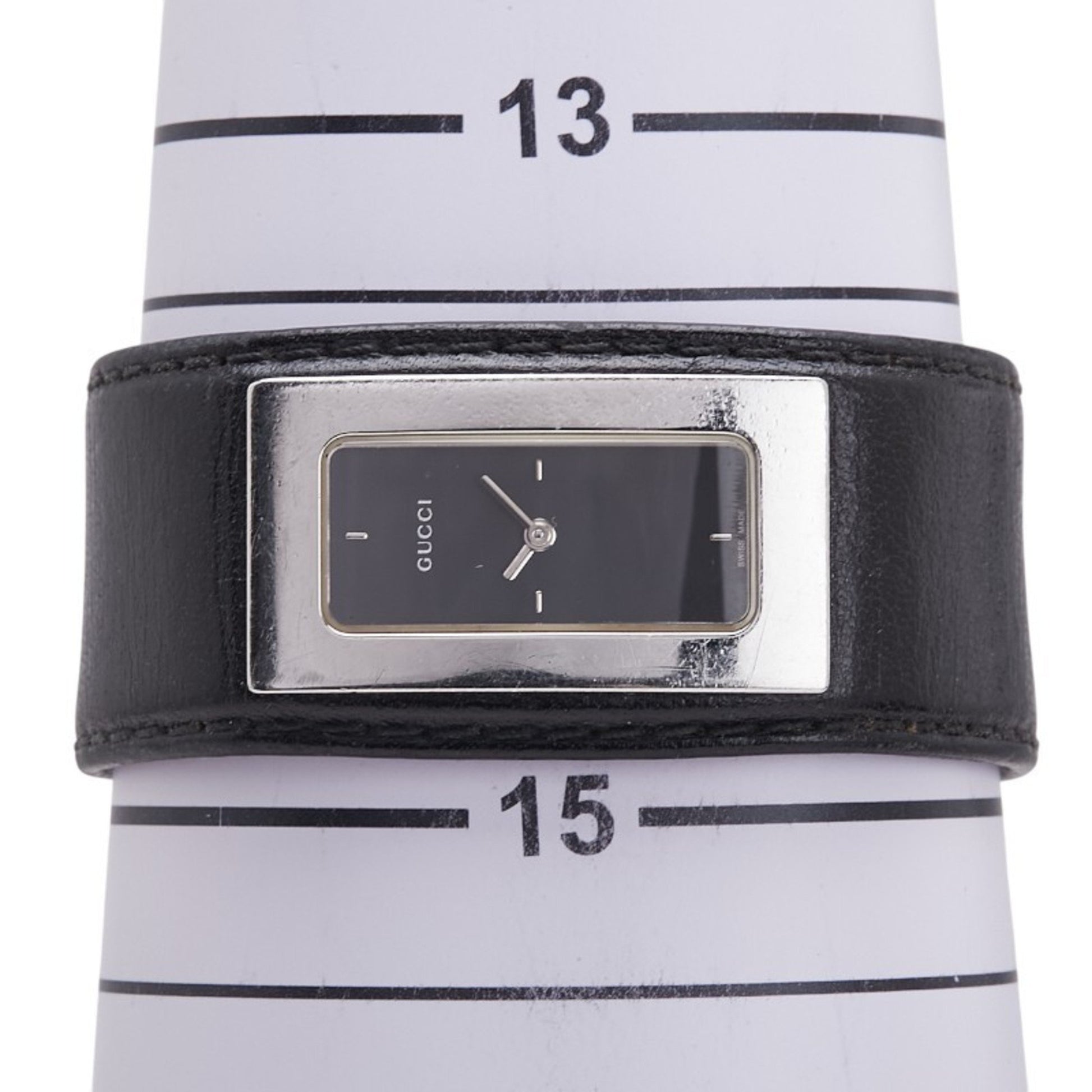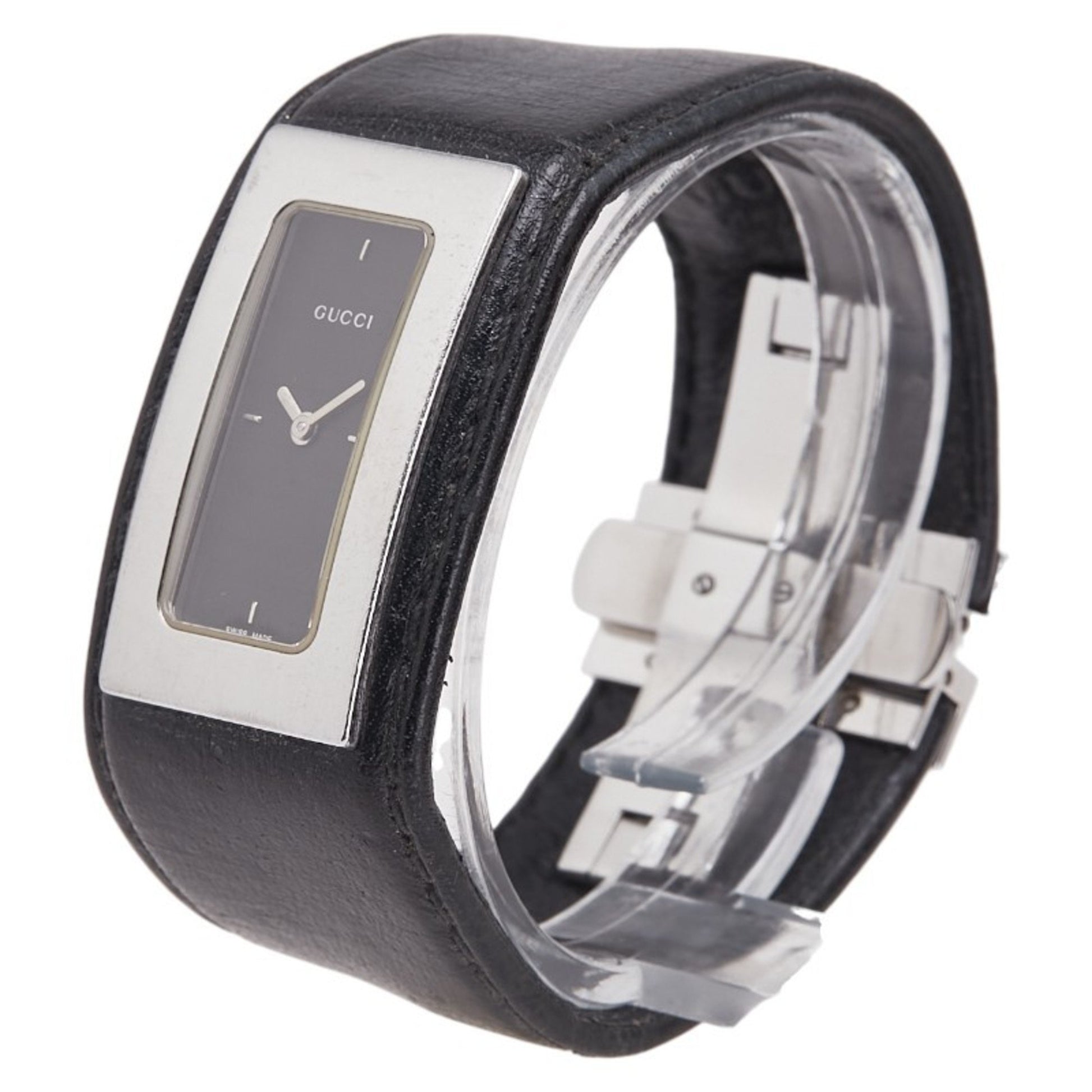Gucci Bangle Watch 7800S Quartz Black Dial Stainless Steel Leather