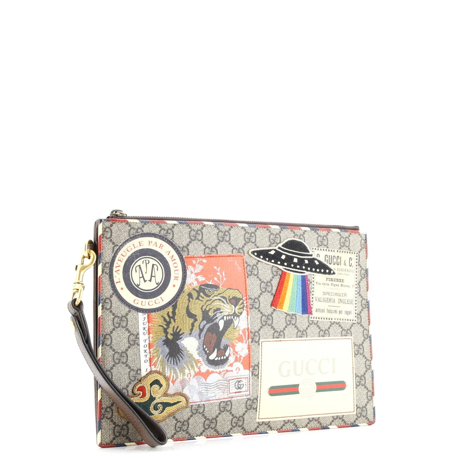 Gucci Courrier Pouch Gg Coated Canvas With Applique