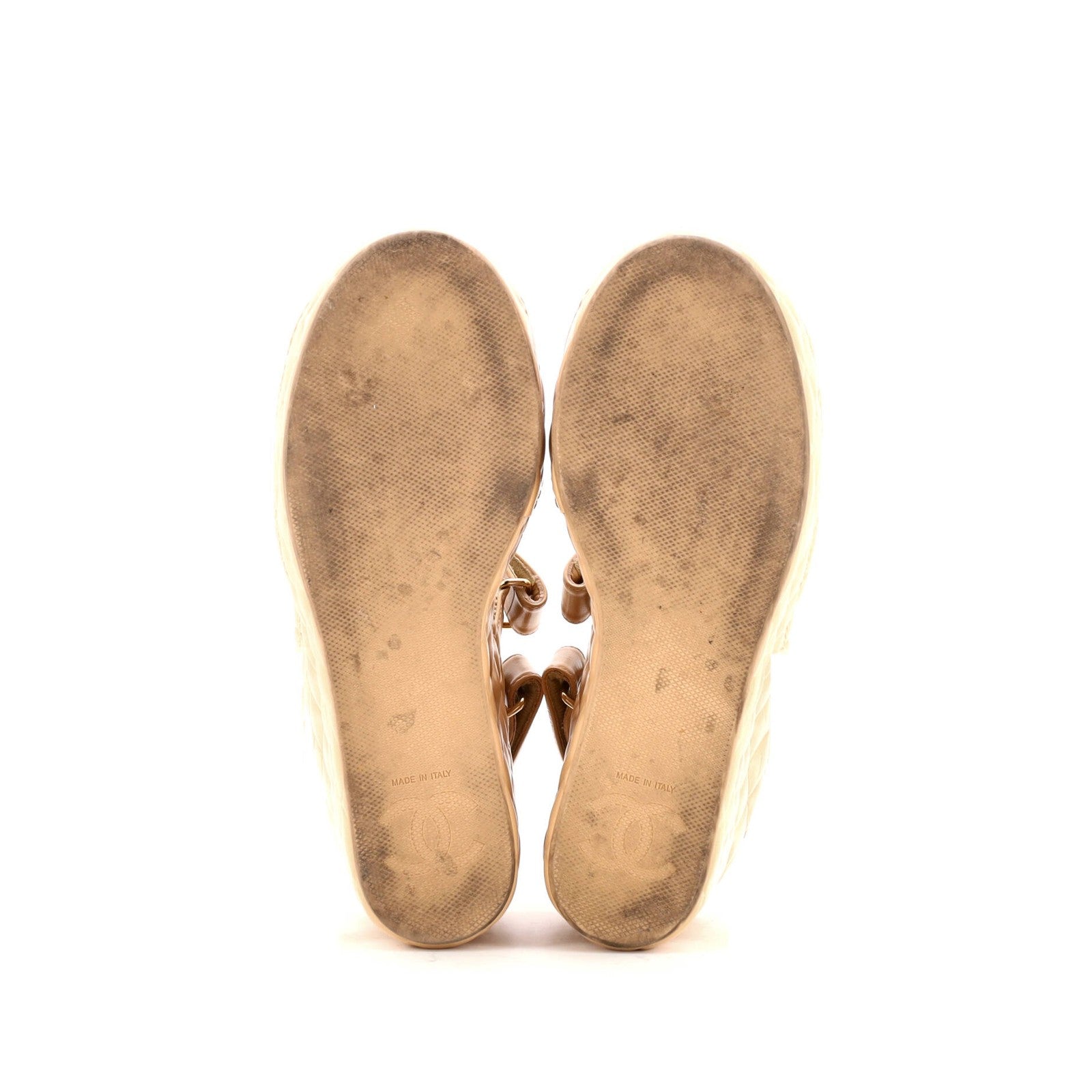 Leather Chanel Women's Logo Strap Wedge Sandals Quilted