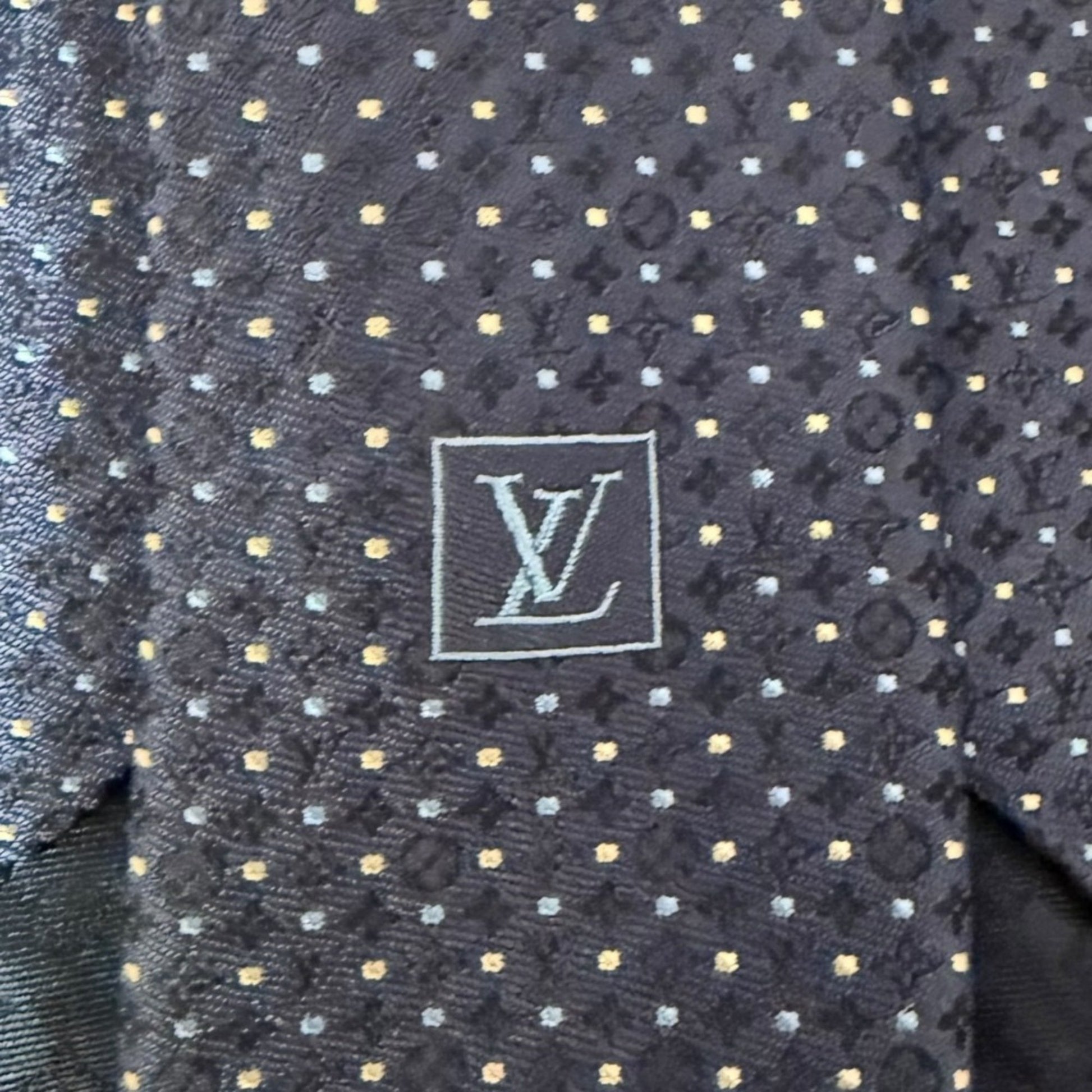 Louis Vuitton Monogram Dot Pattern 100% Silk Tie Navy