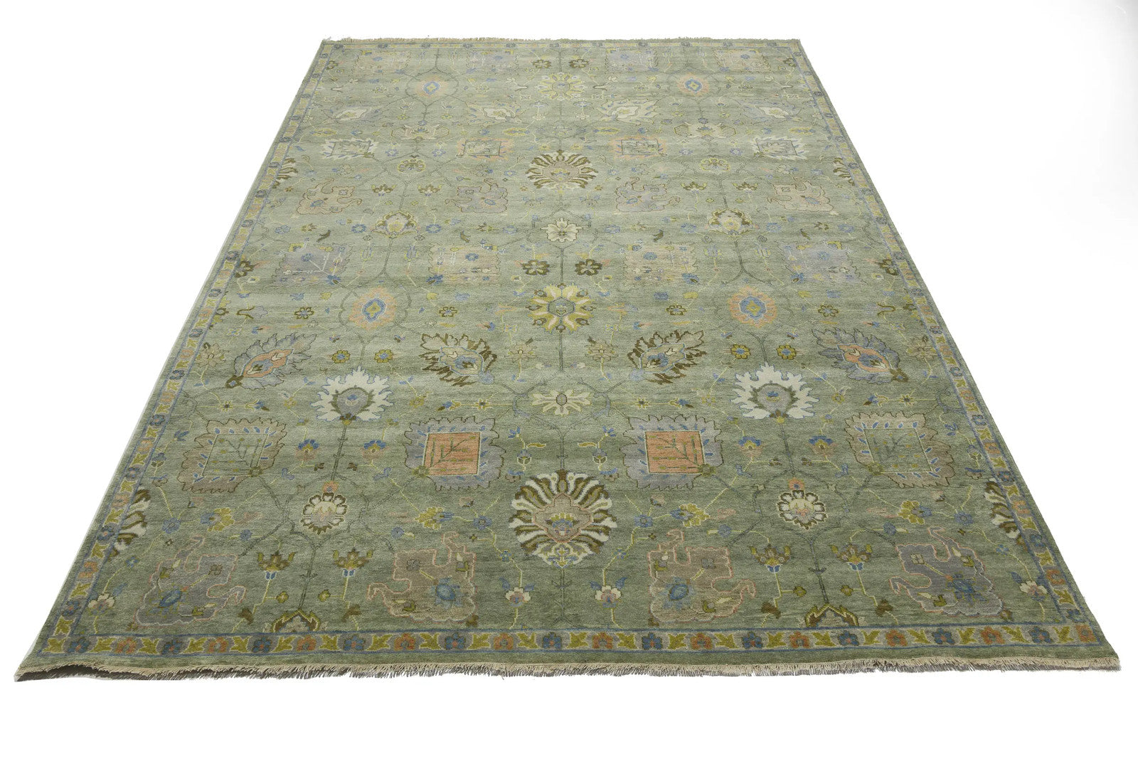 Carpet 9x12 ft Hand-Knotted Floral Green Chobi Design Oriental Rug Large