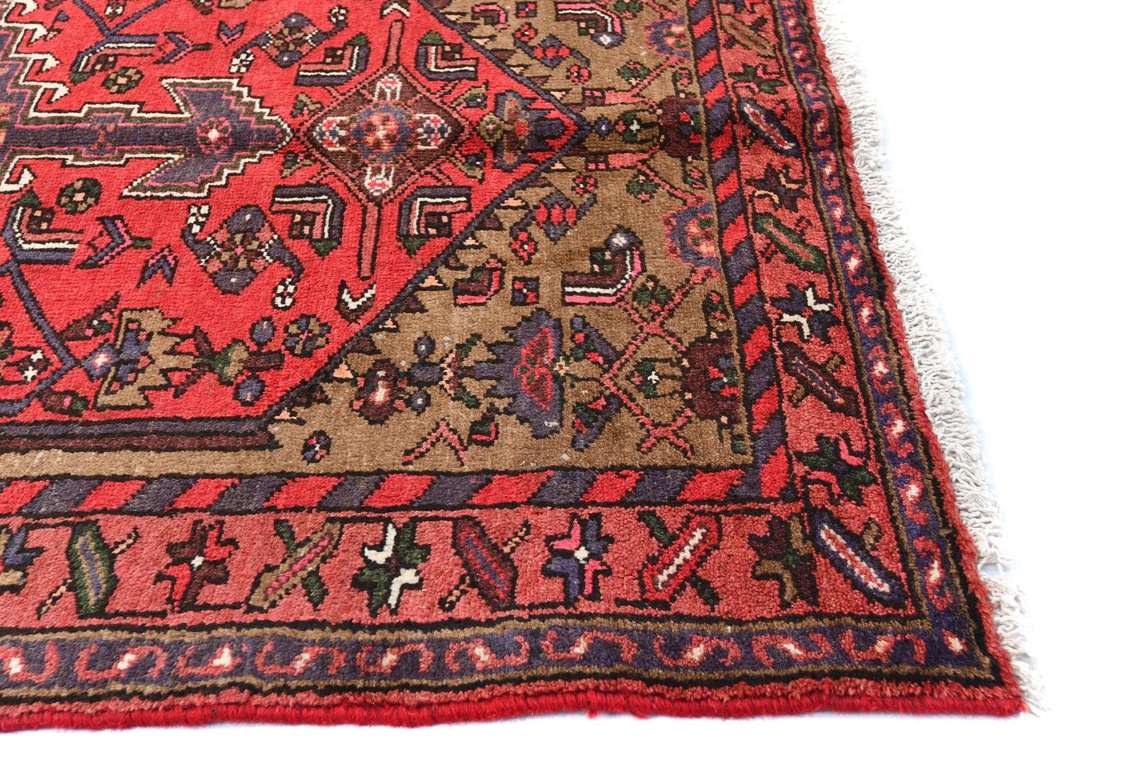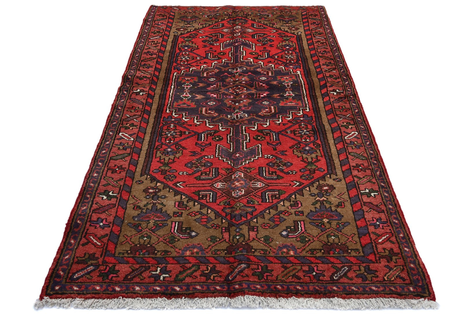 Handmade 3'6" x 6'3" oriental rug with a geometric tribal design from Western Asia, crafted from wool and featuring various colors.