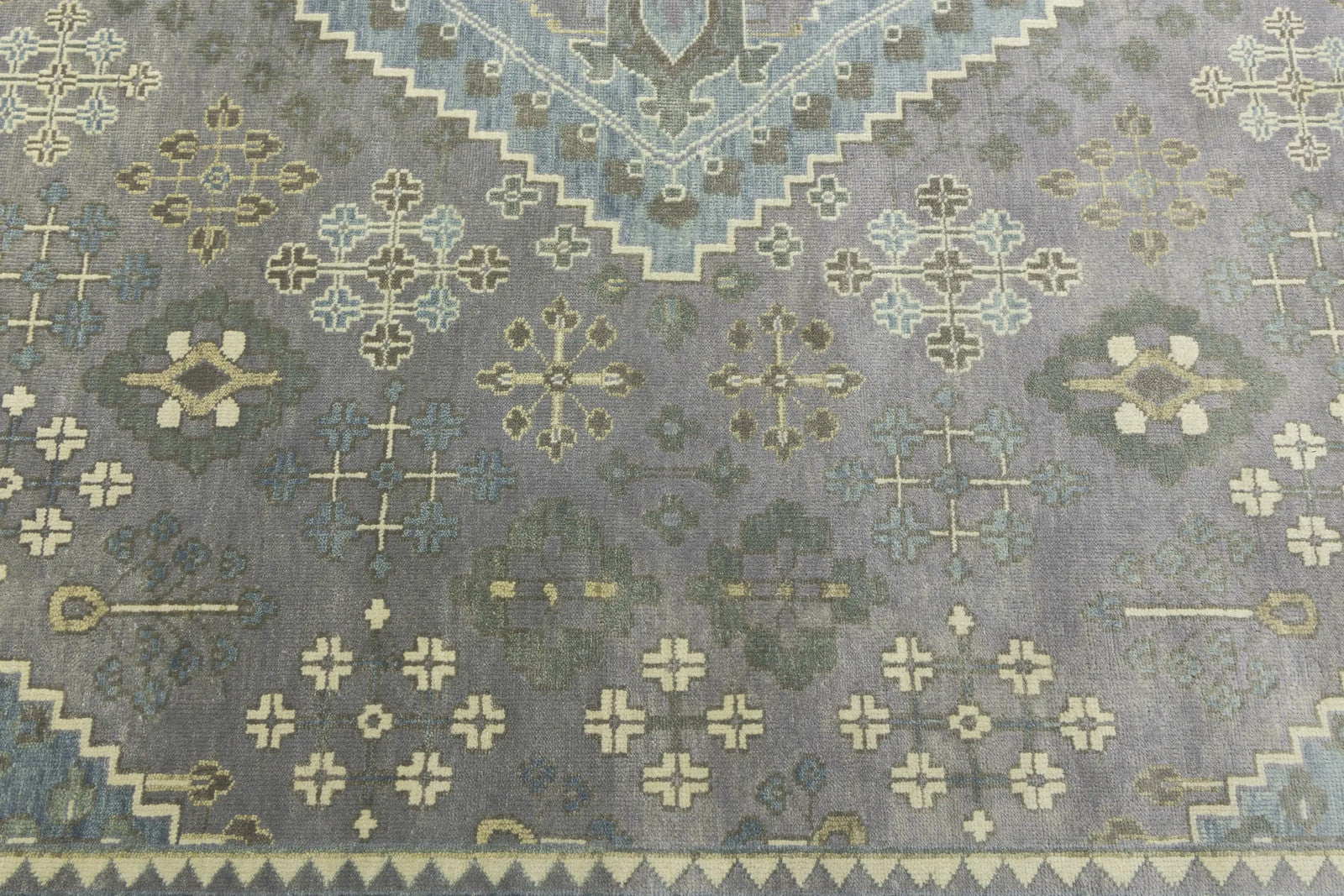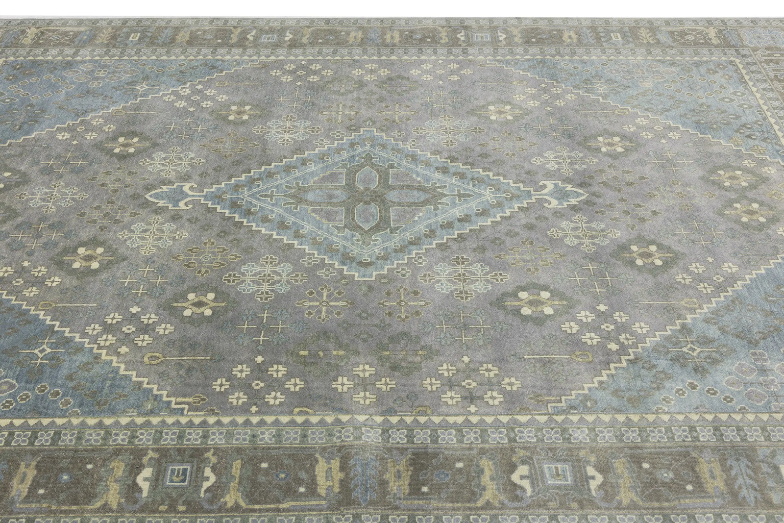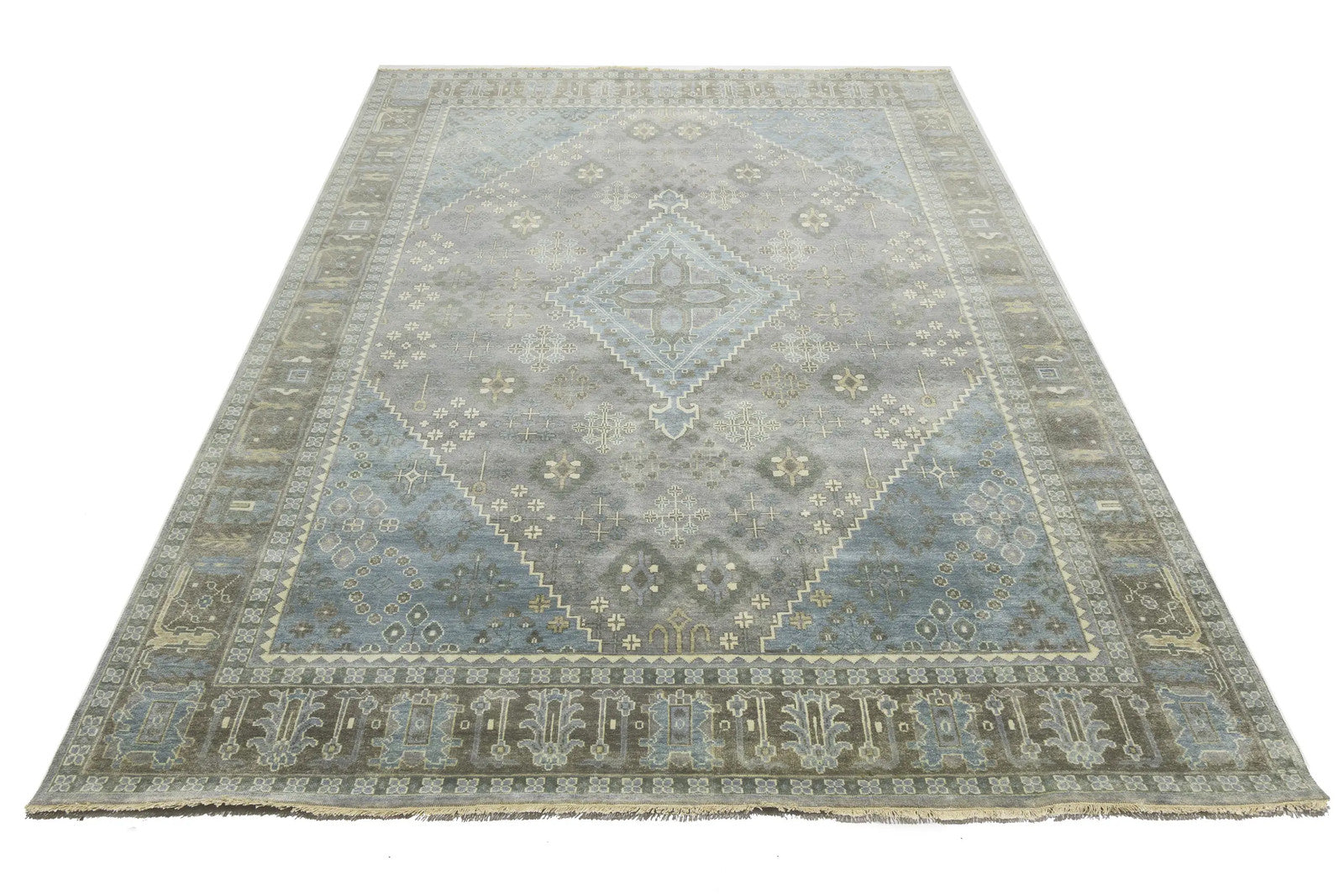 Handmade 9x12 ft Tribal Geometric Oriental Rug from India, crafted from wool with muted colors and a hand-knotted weave.