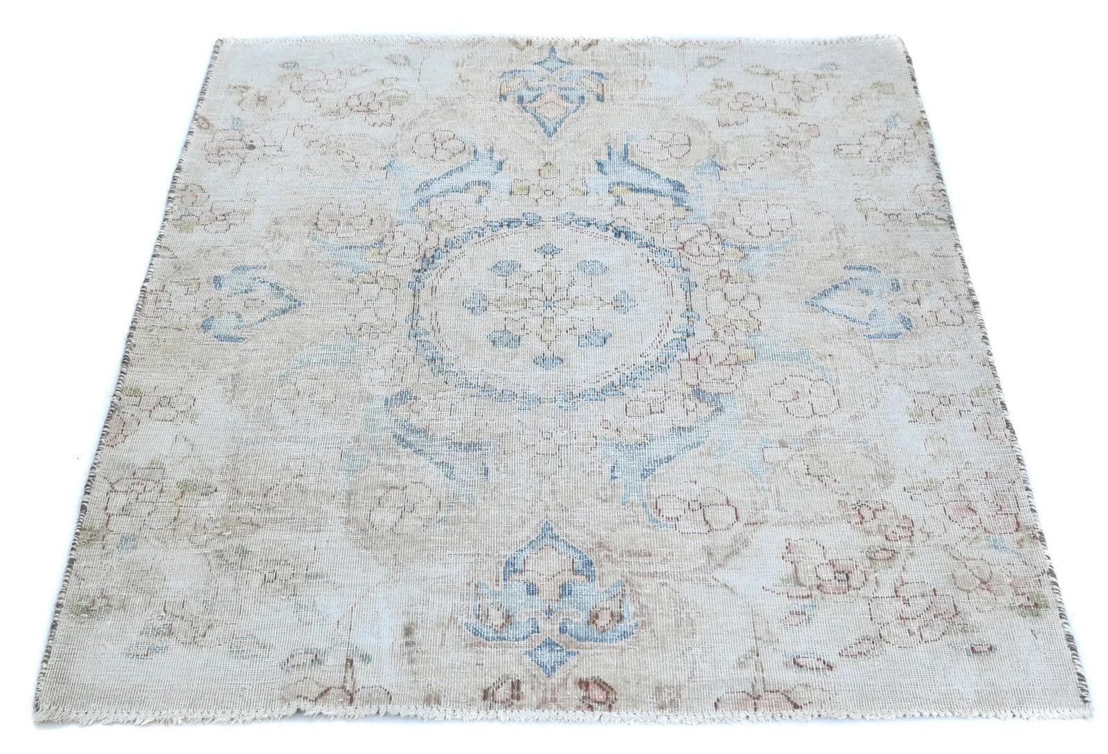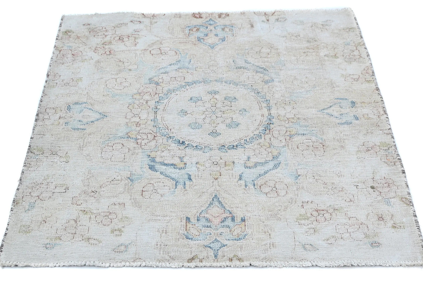 Semi-antique Oriental rug with a muted cream floral design, measuring 2'6" x 2'11", hand-knotted from wool, featuring traditional vintage style.
