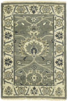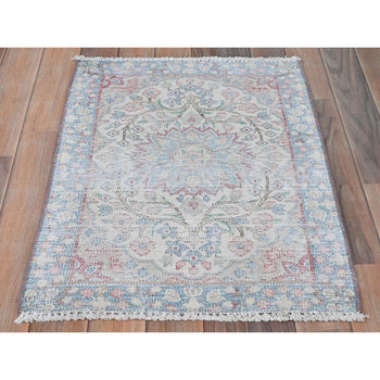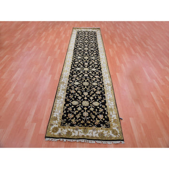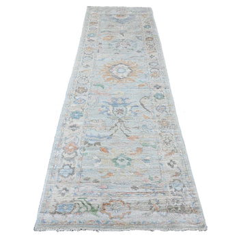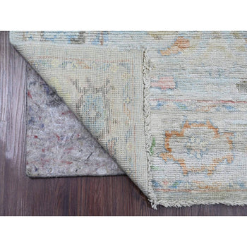 3'10"X12'3" White Angora Oushak Leaf Design Hand Knotted Wool Runner Rug
