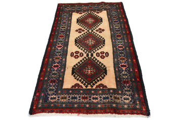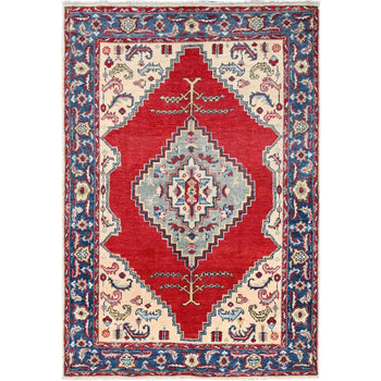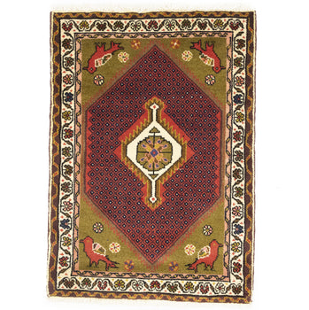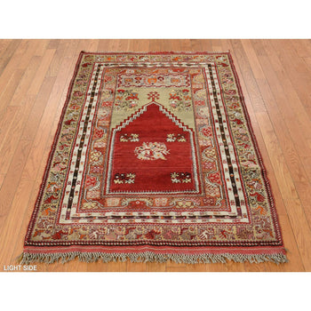 3'10"X5'4" Red Hand Knotted Antique Bergama Prayer Soft Wool Oriental Rug