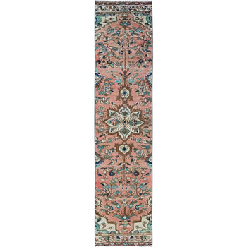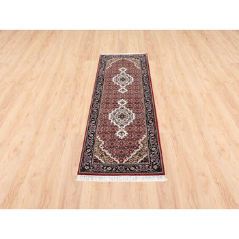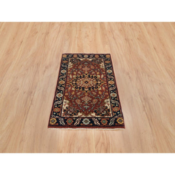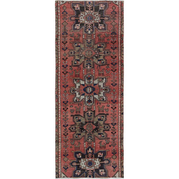 3'10"X12'1" Red Pure Wool Hand Knotted Heris Re-Creation Wide Runner Rug