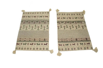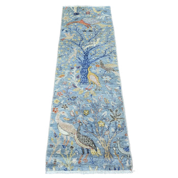 3'1"X19'4" Blue Afghan Peshawar Birds Design Hand Knotted Wool Runner Rug
