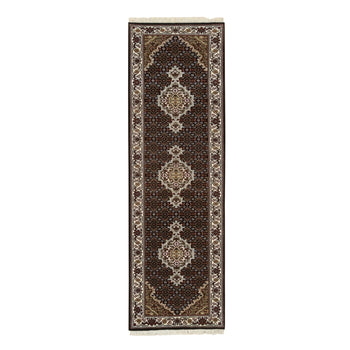 3'10"X6'3" Brown With Navy Silk With Wool Modern Design Hand Knotted Rug