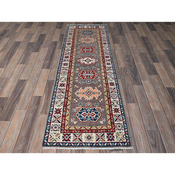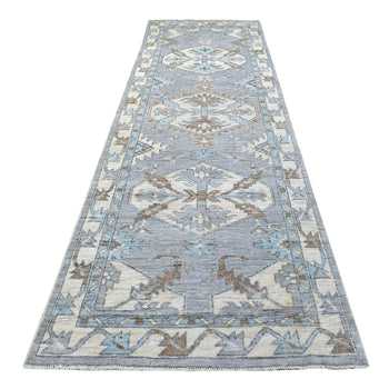 3'1"X15'10" Gray Peshawar Bijar Garus Design Hand Knotted Wool Runner Rug