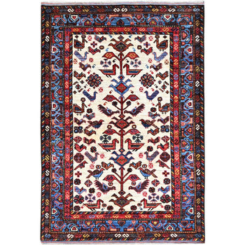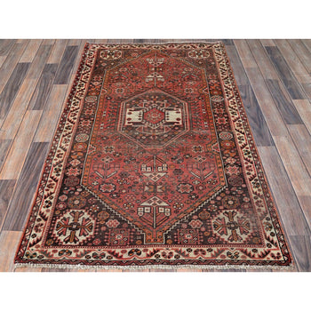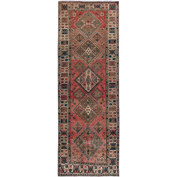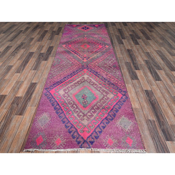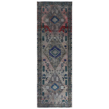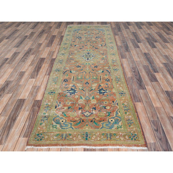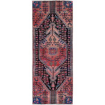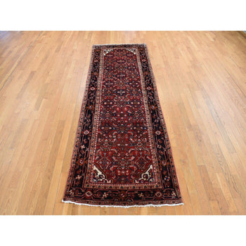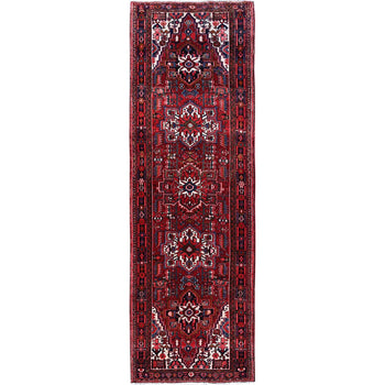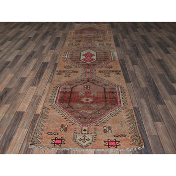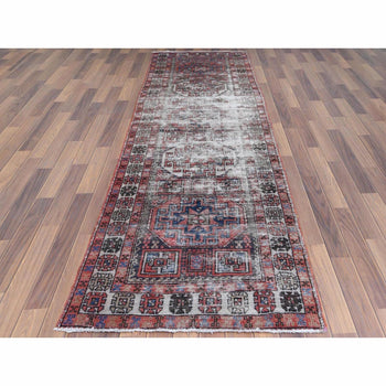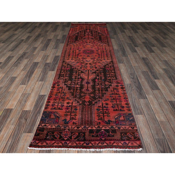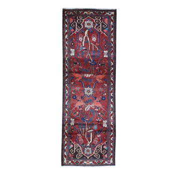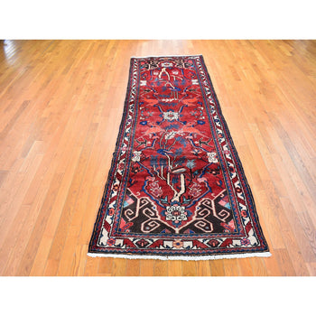 3'6"X11'5" Red Vintage Zoroastrian Heris Pure Wool Hand Knotted Runner Rug