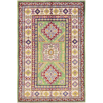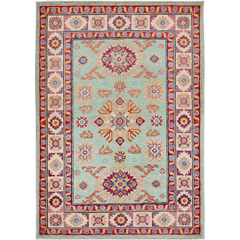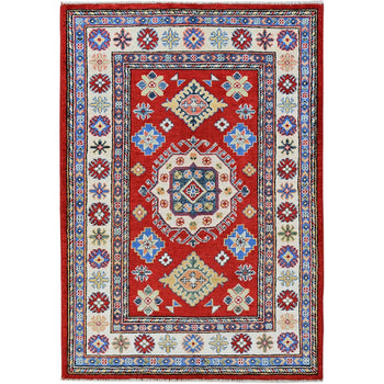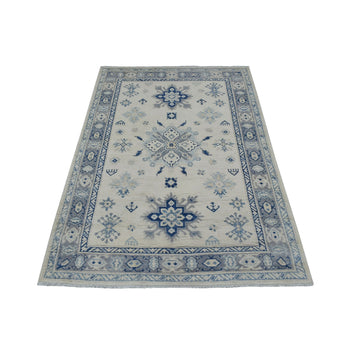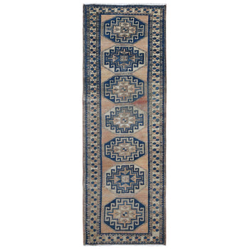 3'4"X19'6" Blue Kazak Geometric Design Soft Wool Hand Knotted Runner Rug