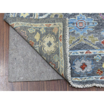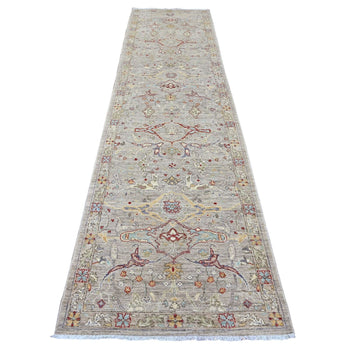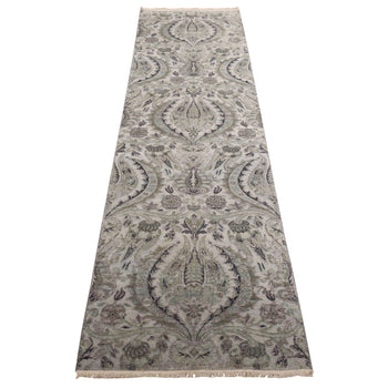 3'X11'10" Mist Gray Flower Design Silk With Wool Hand Knotted Runner Rug