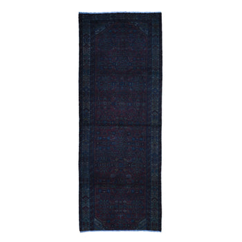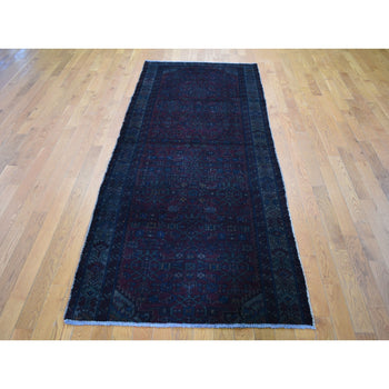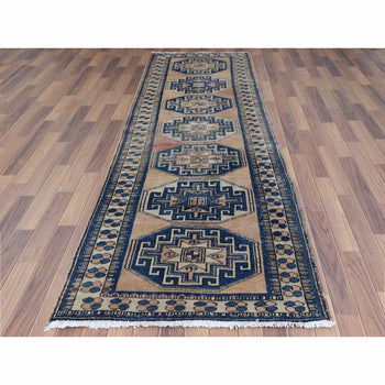 3'4"X16'3" Navy Blue Antique Zoroastrian Rug Pure Wool Hand Knotted Runner