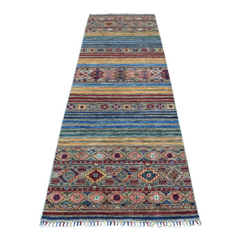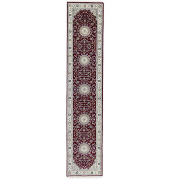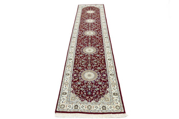 3'X12'2" Silk With Textured Wool Palmette Motif Hand Made Wide Runner Rug