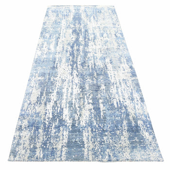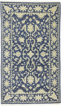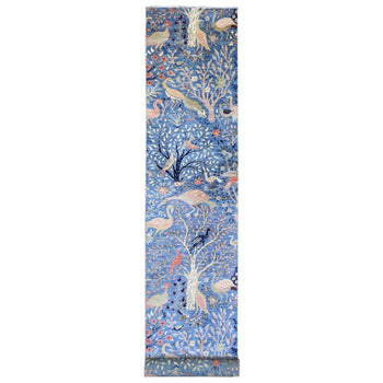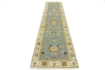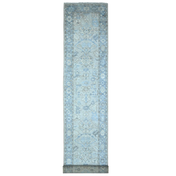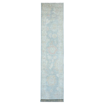 3'X15'6" Blue Angora Oushak Leaf Design Hand Knotted Pure Wool Runner Rug