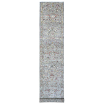 4'1"X11'9" Agate Gray Heris All Over Design Hand Knotted Wool Runner Rug