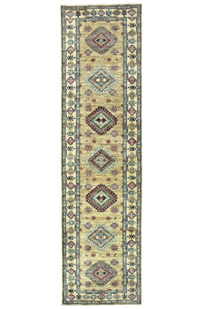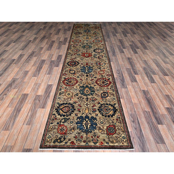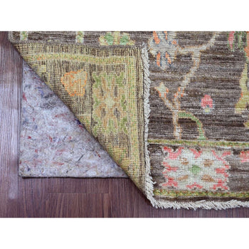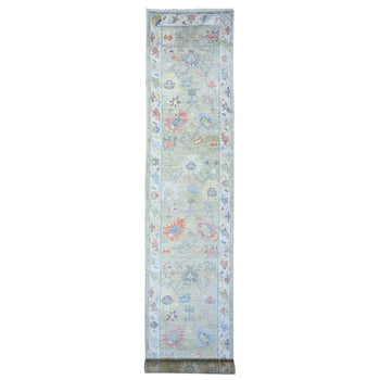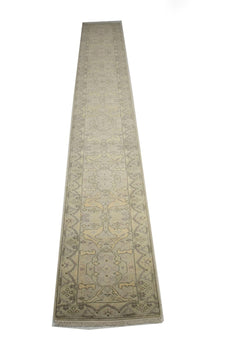 3'X15'9" Olive Gray Hand Knotted Afghan Angora Oushak Wool Xl Runner Rug