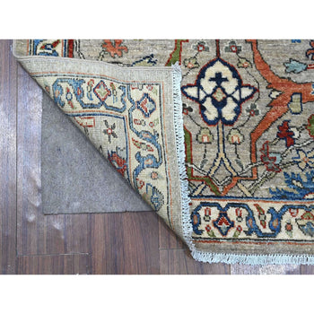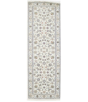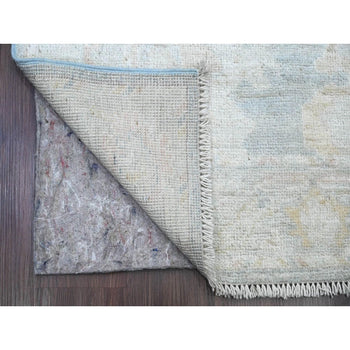 3'X22'5" White Angora Oushak Leaf Design All Wool Hand Knotted Runner Rug