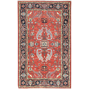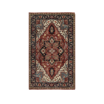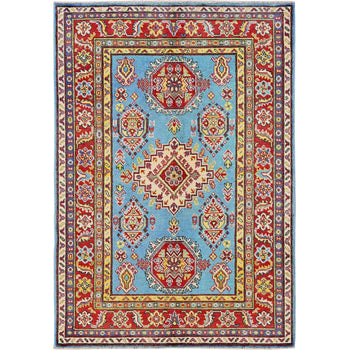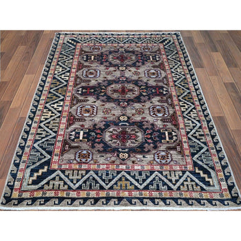 4'1"X5'10" Armenian Design Kazak Super Dense Weave Wool Hand Knotted Rug