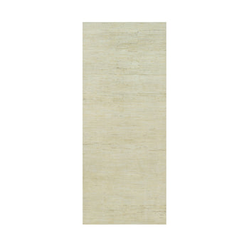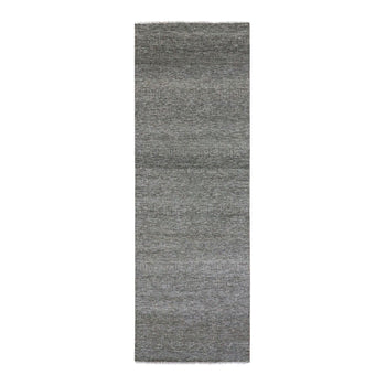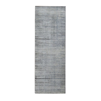 3'X9' Ash Gray Horizontal Ombre Design Pure Silk Hand Knotted Runner Rug