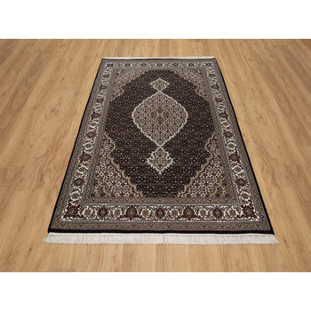 4'10"X7' Phantom Black Hand Knotted Sickle Leaf Design Wool And Silk Rug