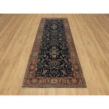 4'2"X10'2" Blue Antiqued Fine Heris Hand Knotted Natural Wool Runner Rug