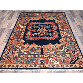 4'1"X9'9" Extra Soft Wool Hand Knotted Blue Afghan Ersari Wide Runner Rug