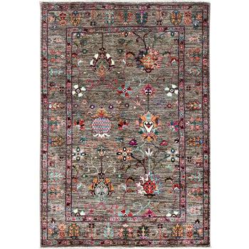 4'1"X9'8" Echo Gray Wool Peshawar Colorful Mahal Hand Knotted Runner Rug