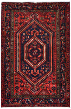 4'3"X6'3" Red Antique Caucasian Kazak Hand Knotted 100% Wool Oriental Rug