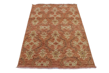 4'X11'9" White Hand Knotted Angora Oushak Leaf Design All Wool Runner Rug