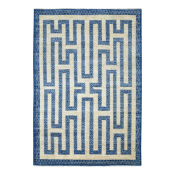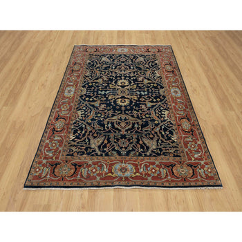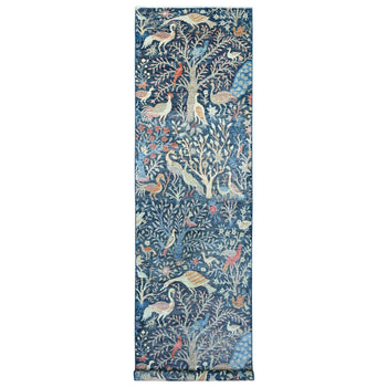 4'X11'9" Blue 200 Kpsi Wool Caucasian Design Hand Knotted Wide Runner Rug