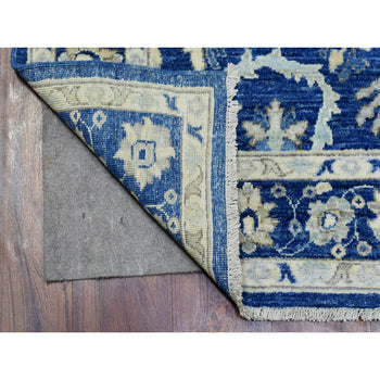 4'X15'7" Blue Hand Knotted Angora Oushak Leaf Design Pure Wool Runner Rug