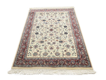5'1"X5'1" Ivory Silk With Textured Wool Tebraz Hand Knotted Oriental Rug