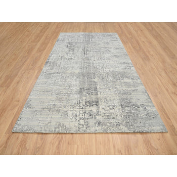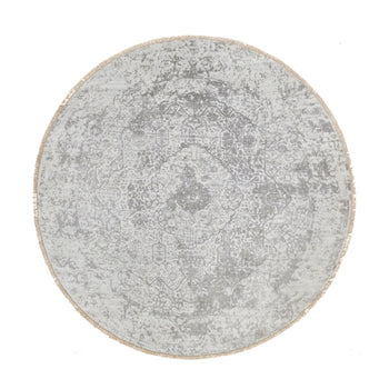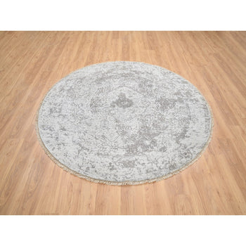 6'X6' Ice Gray Wool And Silk Broken And Erased Hand Knotted Oriental Rug