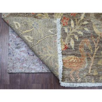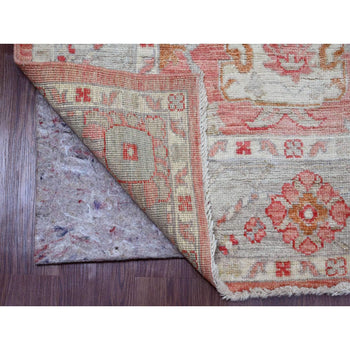6'X7'8" Ivory Afghan Caucasian Design Revival Soft Wool Hand Knotted Rug