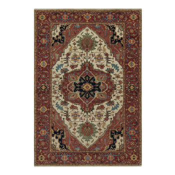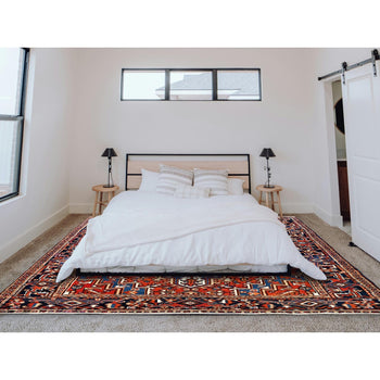 6'2"X9'1" Caliente Red Antiqued Haji Jalili Design Wool Hand Knotted Rug