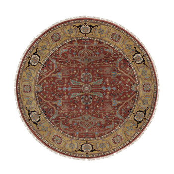 6'2"X6'2" Red Antiqued Fine Heris Hand Knotted New Zealand Wool Round Rug