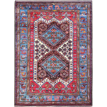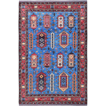 6'4"X8'9" Blue Afghan Ersari Caucasian Design Revival Wool Hand Knotted Rug