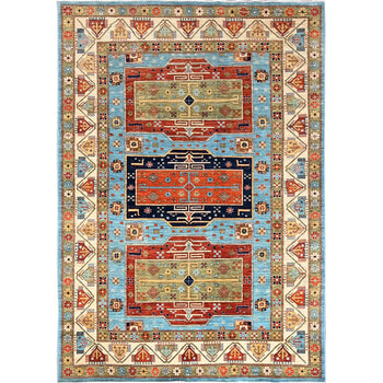 6'X8'6" Maya Blue Armenian Inspired Caucasian Design Wool Hand Knotted Rug