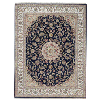 7'1"X7'1" Blue Shah Abbas Flower Design Pure Wool Hand Knotted Round Rug