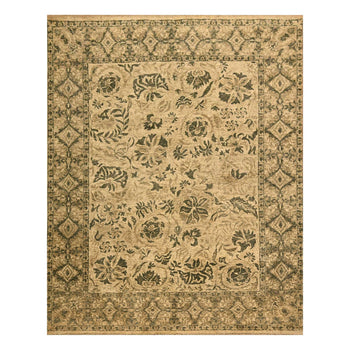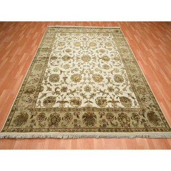 7'8"X10' White Rajasthan With Leaf Design Wool And Silk Hand Knotted Rug