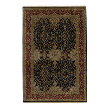 6'X9'1" Black Kishoon Revival New Zealand Wool Hand Knotted Oriental Rug