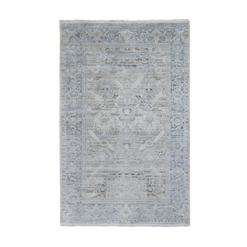 6'X9' Grey Broken Farsian Design Wool And Silk Hand Knotted Oriental Rug