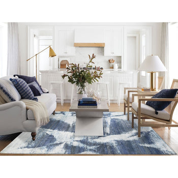 7'10"X10' Hand Knotted Black With A Mix Of Blue Modern Wool And Silk Rug