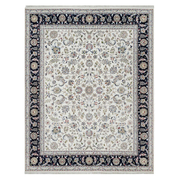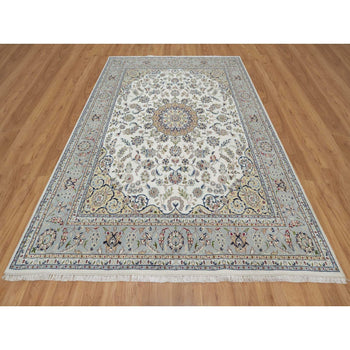 7'8"X10'2" Daisy White Nain Floral Design Hand Knotted Wool And Silk Rug