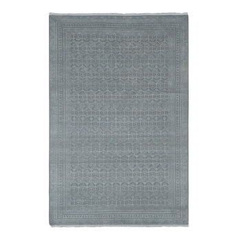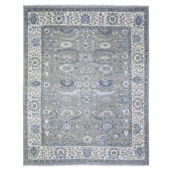 7'10"X10' Cloud Gray Wool And Pure Silk Jewellery Design Hand Knotted Rug