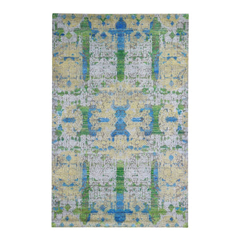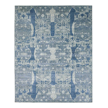 7'10"X9'9" Gray Fine Jacquard Hand Loomed Erased Design Wool And Silk Rug